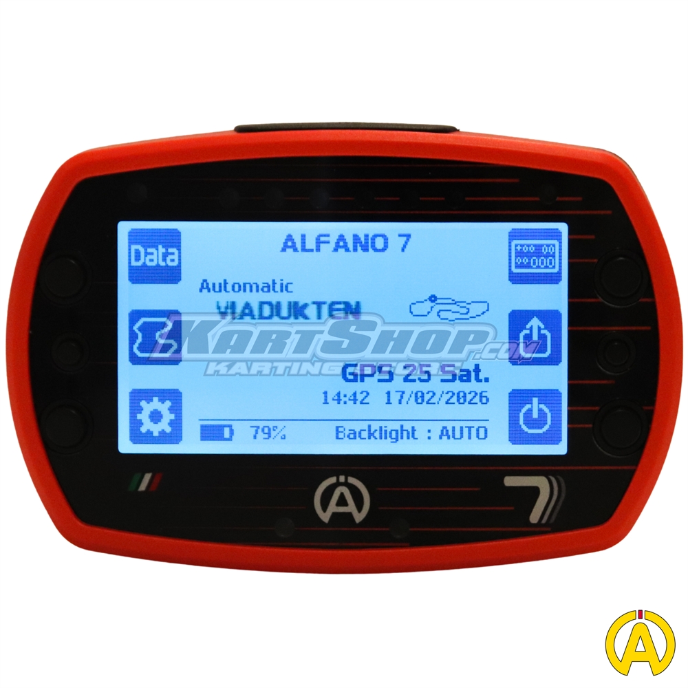 Alfano 7 1T er en avanceret GPS-baseret laptimer og datalogger til karting og motorsport, udviklet til kørere der ønsker præcis omgangstid, hastighed og kørselsanalyse kombineret med grundlæggende motorovervågning. Enheden er velegnet til både træning og løb og giver et klart overblik over kørestil og performance.