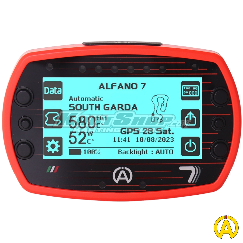 Alfano 7 1T er en avanceret GPS-baseret laptimer og datalogger til karting og motorsport, udviklet til kørere der ønsker præcis omgangstid, hastighed og kørselsanalyse kombineret med grundlæggende motorovervågning. Enheden er velegnet til både træning og løb og giver et klart overblik over kørestil og performance.