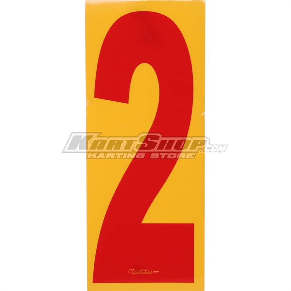 Nummer klistermærke med Rødt tal på Gul bagrund.