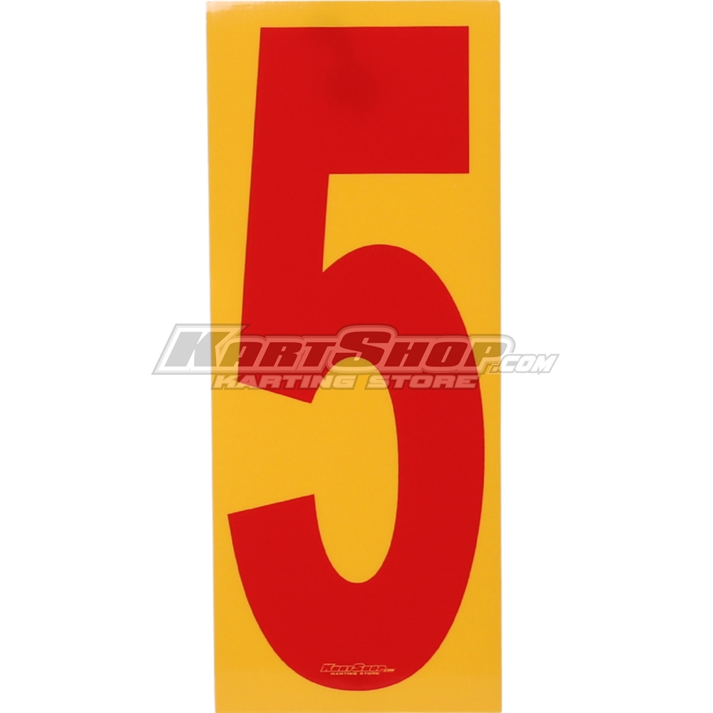 Nummer klistermærke med Rødt tal på Gul bagrund.