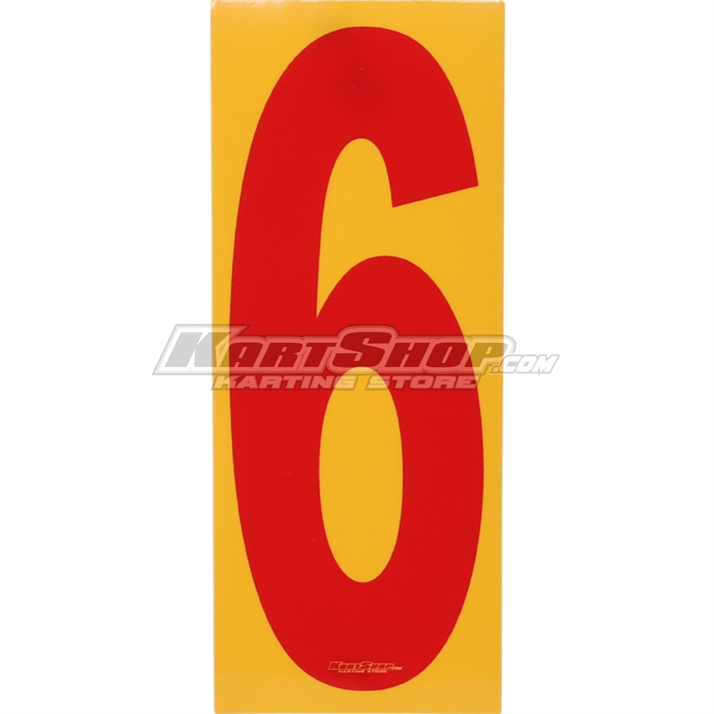 Nummer klistermærke med Rødt tal på Gul bagrund.