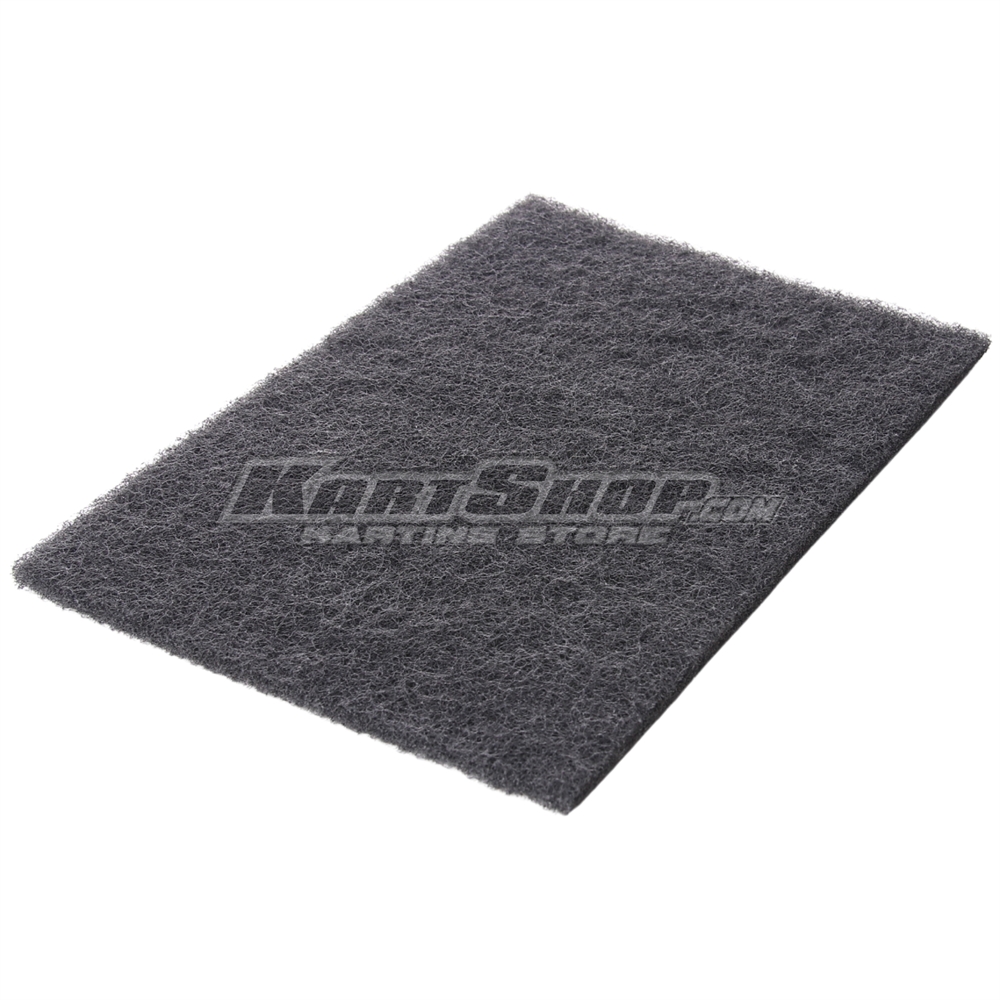 Professionel slibepude af typen POLINOX, også kendt som Scotch-Brite, til fin formaling, rengøring og overfladeforberedelse. Puden er ideel til at fjerne let rust, oxider og misfarvninger på metaldele — særligt brugt i karting til at opfriske bagaksler, nav og andre komponenter.